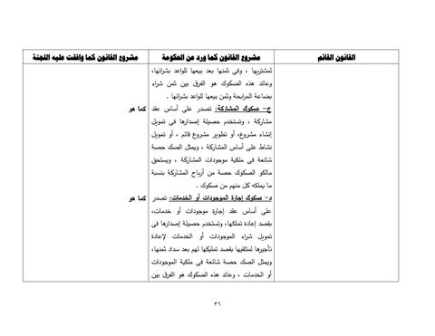 ج -صكوك المشاركة :تصدر على أساس عقد كما هو مشاركة ،وتستخدم حصيلة إصدارها فى تمويل إنشاء مشروع ،أو تطوير مشروع قائم ،أو تمويل