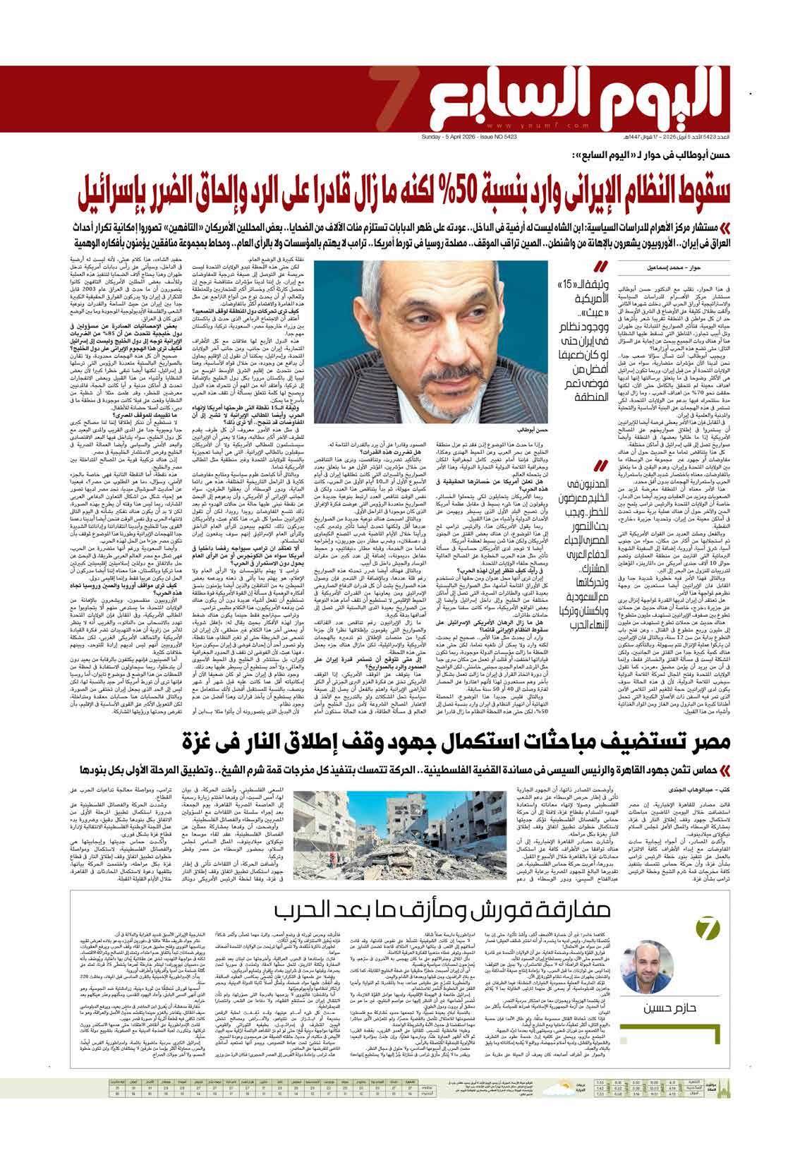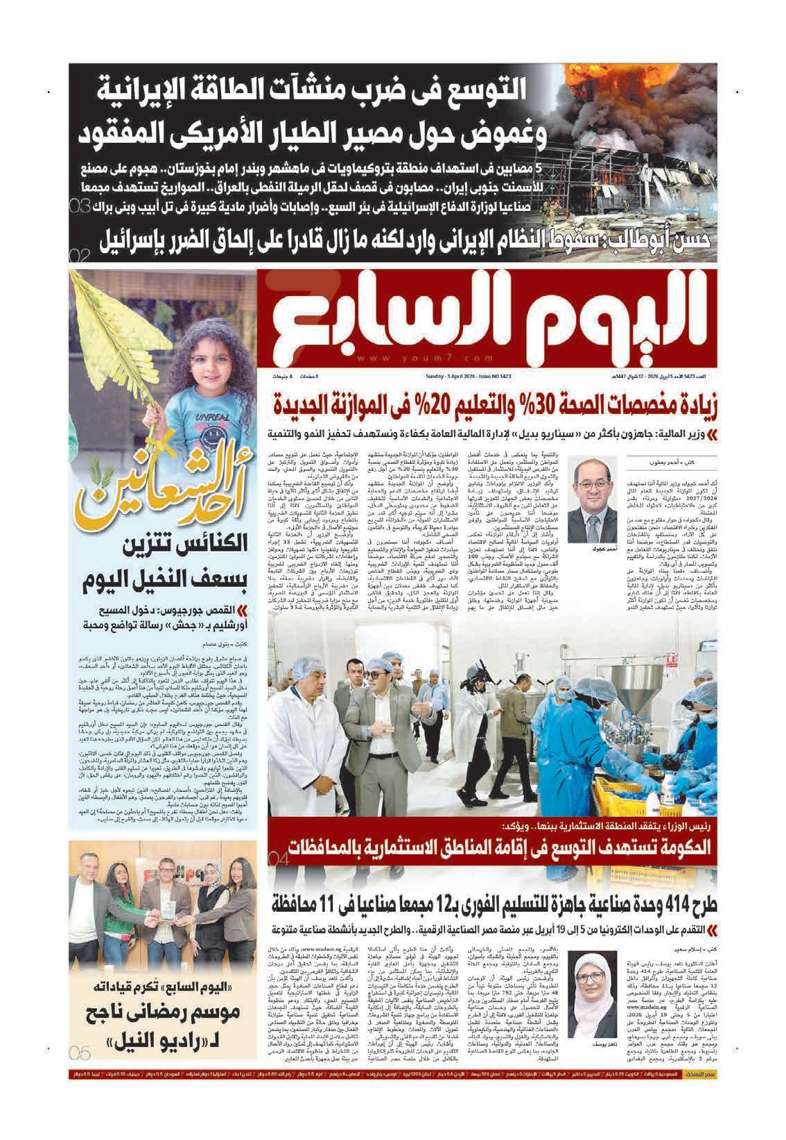عدد اليوم السابع 05-04-2026 — نسخة PDF من صحيفة اليوم السابع: أبرز أخبار مصر والعالم، تحقيقات، اقتصاد، رياضة وفن ومتابعة عاجلة.