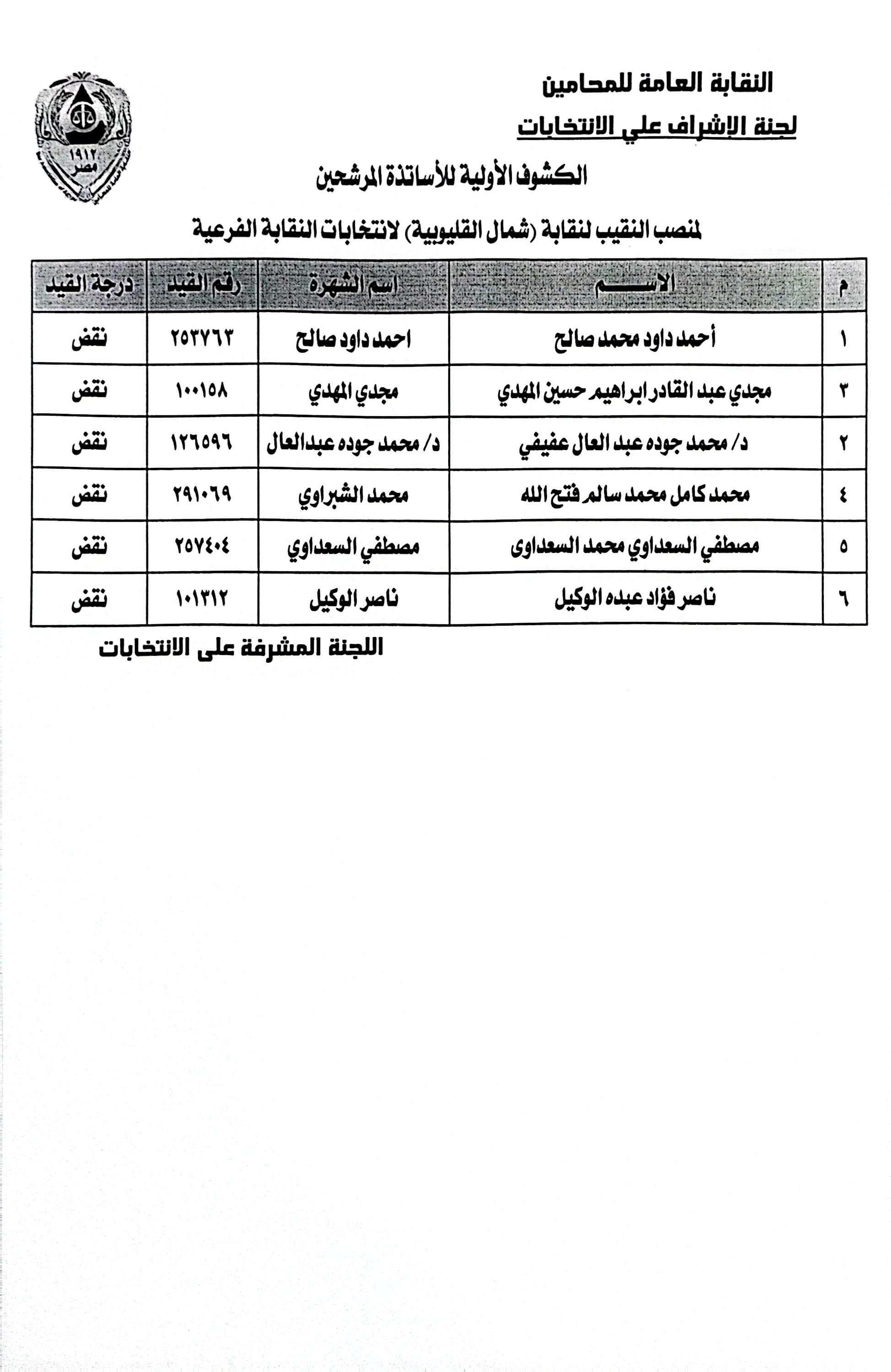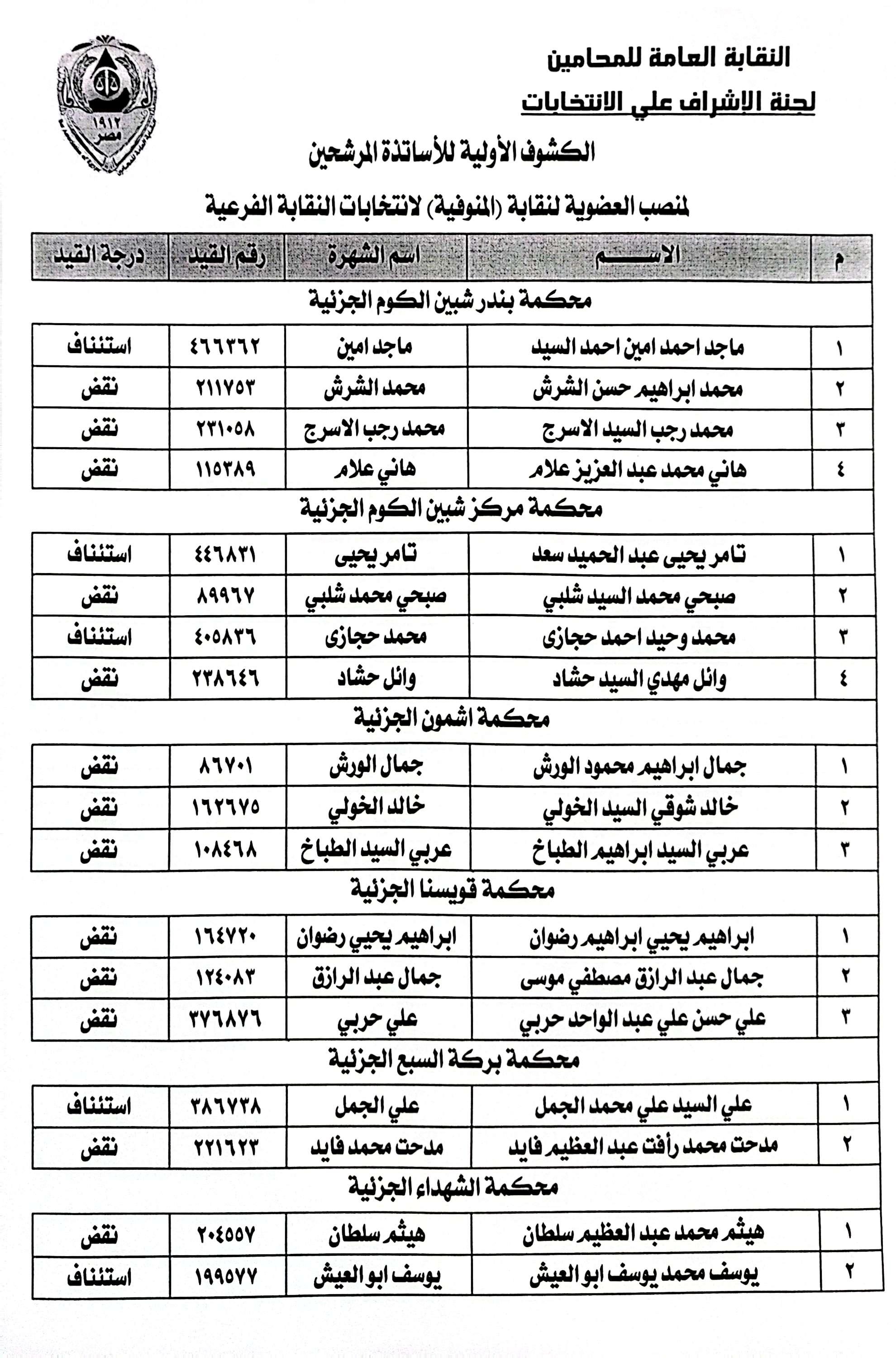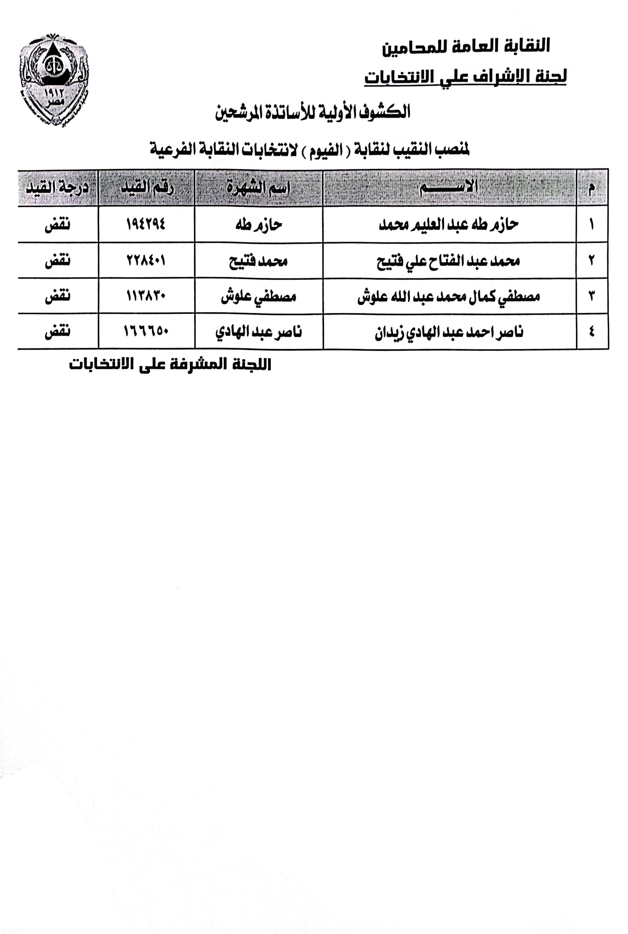 الكشوف الاوليه للانتخابات النقابه الفرعية