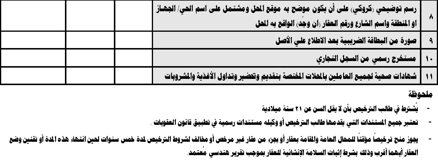 ١٦٩٨ ﺔﻨﺴـﻟ ٢٠٢٠ ﺩﺎـﻤﺘﻋﺍ ﻥﺄﺸـﺒ لﺎﺤﻤﻟﺍ ﻑﻴﻨﺼﺘ لﻭﺍﺩﺠ ؛ ﺔﻤﺎﻌﻟﺍ ﺦﻴﺭﺎـﺘﺒ ﺓﺩـﻘﻌﻨﻤﻟﺍ ﺎﻬﺘﺴﻠﺠﺒ ﺔﻤﺎﻌﻟﺍ لﺎﺤﻤﻟﺍ ﺹﻴﺨﺍﺭﺘﻟ ﺎﻴﻠﻌﻟﺍ ﺔﻨﺠﻠﻟﺍ ﻉﺎﻤﺘﺠﺍ ﻰﻠﻋﻭ ٦/١٢/٢٠٢٢ ؛ ﺭﺍﺭﻘﻟﺍ ﺍﺫﻬﻟ ﻕﻓﺍﺭﻤﻟﺍ لﻭﺩﺠﻠﻟ ﺎﹰﻘﻓﻭ لﻭﺌﺴﻤ ﺭﻴﺩﻤ ﺏﻠﻁﺘﺘ ﻲﺘﻟﺍ ﺔﻁﺸﻨﻷﺍ ﻥﻭﻜﺘ . ﺎﻫﺭﻓﺍﻭﺘ ﺏﺠﺍﻭﻟﺍ ﺕﺎﻁﺍﺭﺘﺸﻻﺍ ﻰﻓ لﻭﺌﺴﻤﻟﺍ ﺭﻴﺩﻤﻟﺍ : ١ - ﻻﺃ ﻥﻭﻜﻴ ﺩﻗ ﻕﺒﺴ ﻡﻜﺤﻟﺍ ﻪﻴﻠﻋ ﺔﺒﻭﻘﻌﺒ ﺔﻴﺌﺎﻨﺠ ﻭﺃ ﺔﺒﻭﻘﻌﺒ ﺓﺩﻴﻘﻤ ﺔﻴﺭﺤﻠﻟ ﻰﻓ ﺔﻤﻴﺭﺠ ﺔﻠﺨﻤ ﻑﺭﺸﻟﺎﺒ ﺔﻨﺎﻤﻷﺍﻭ ﺎﻤ ﻡﻟ ﻥﻜﻴ ﺩﻗ ﺩﺭ ﻪﻴﻟﺇ ﻩﺭﺎﺒﺘﻋﺍ. ٢ - ﻻﺃ لﻘﻴ ﺔﻨﺴ ﻥﻋ ٢١ ﺔﻨﺴ ﺔﻴﺩﻼﻴﻤ . ٣ - ﻡﻴﺩﻘﺘ ﺎﻤ ﺩﻴﻔﻴ ﻑﻗﻭﻤﻟﺍ ﻥﻤ ﺔﻤﺩﺨﻟﺍ ﺔﻴﺭﻜﺴﻌﻟﺍ . ٤ - ﻰﻓ ﺔﻟﺎﺤ ﻥﻴﻴﻌﺘ ﺭﻴﺩﻤ ﻲﺒﻨﺠﺃ ﺏﺠﻴ ﻥﺃ ﻡﺩﻘﻴ ﺓﺩﺎﻬﺸ ﻥﻤ ﺭﺍﺩ لﻴﺜﻤﺘﻟﺍ ﻲﺴﺎﻤﻭﻠﺒﺩﻟﺍ ﻭﺃ ﻲﻠﺼﻨﻘﻟﺍ ﺔﻟﻭﺩﻠﻟ ﻊﺒﺎﺘﻟﺍ ﺎﻬﻟ ﻥﻋ ﻪﻘﺒﺍﻭﺴ ﻭﺃ ﻥﺴﺤﺒ ﻩﺭﻴﺴ ﻪﻜﻭﻠﺴﻭ .