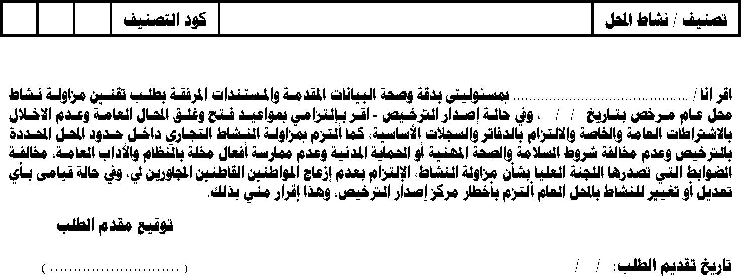 ﻡﺍﺯﺘﻟﻻﺍ ﻊﻤ ،ﻁﺎﺸﻨﻟﺍ ﺍﺫﻫ ﺔﻟﻭﺍﺯﻤﻟ ﺔﻤﺎﻌﻟﺍ ﺕﺎﻁﺍﺭﺘﺸﻻﺍ ﺭﻓﺍﻭﺘ ﺏﺠﻴ ﻑﻼﺨ ﺔﺒﻬﺘﻠﻤ ﻭﺃ ﺔﻌﻗﺭﻔﻤ ﻭﺃ لﺎﻌﺘﺸﻼﻟ ﺎﻬﻌﻴﺒ ﻁﺎﺸﻨ ﺔﻟﻭﺍﺯﻤﺒ ﺹﺨﺭﻤﻟﺍ ﺔﻋﺎﻀﺒﻟﺍ .