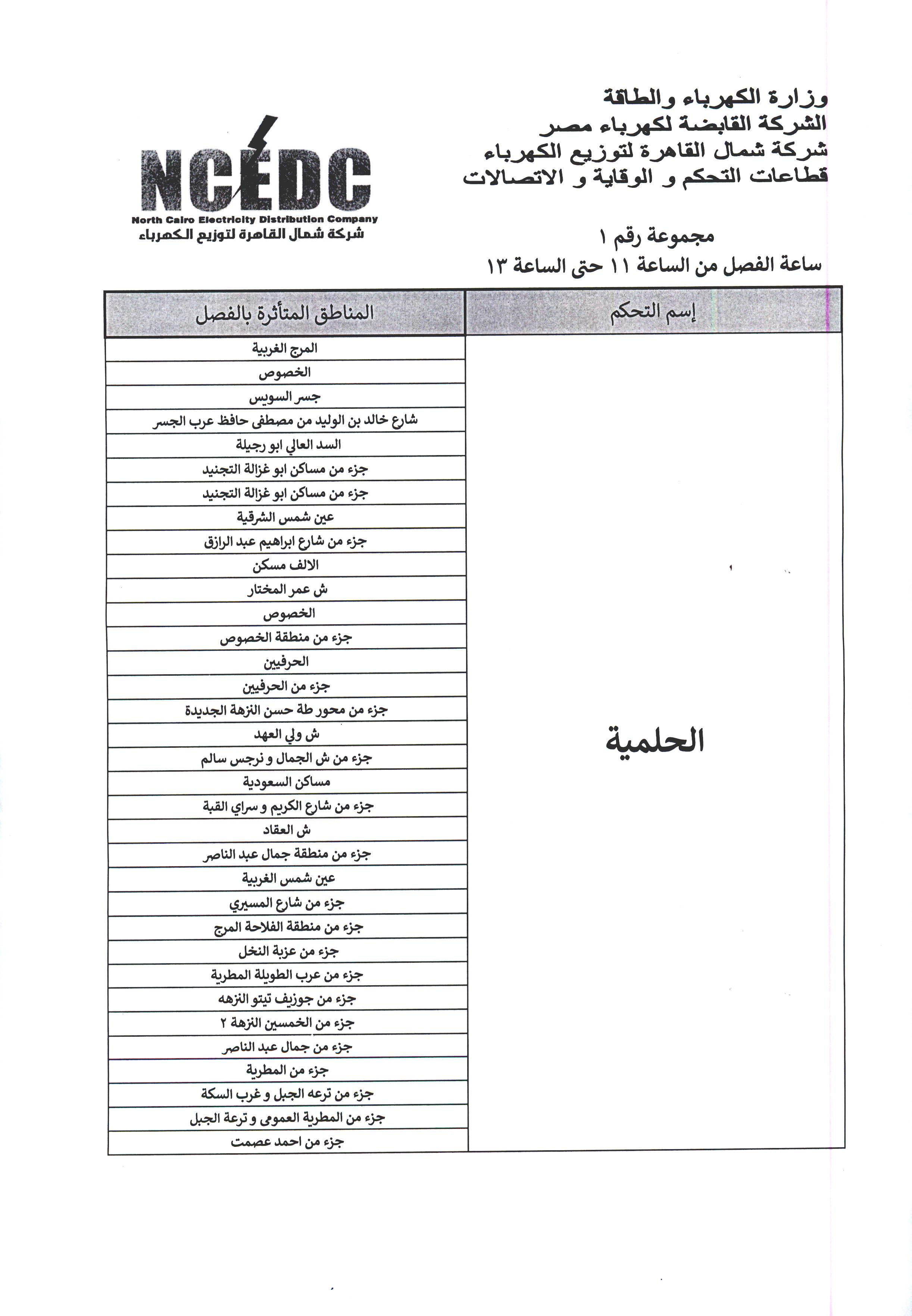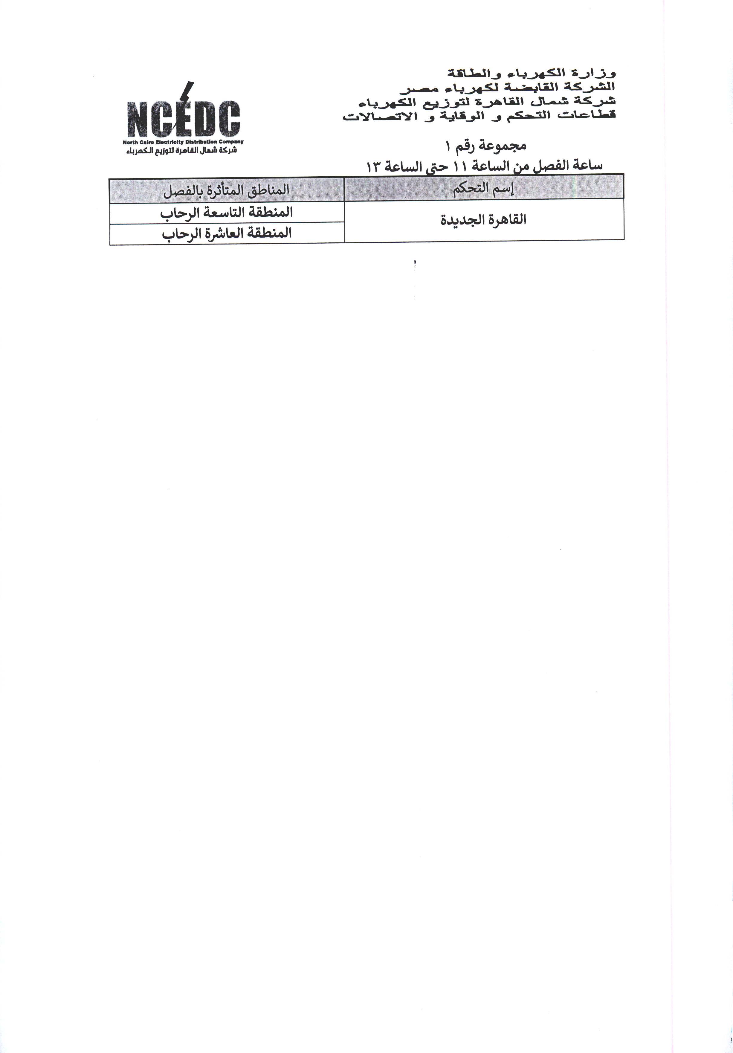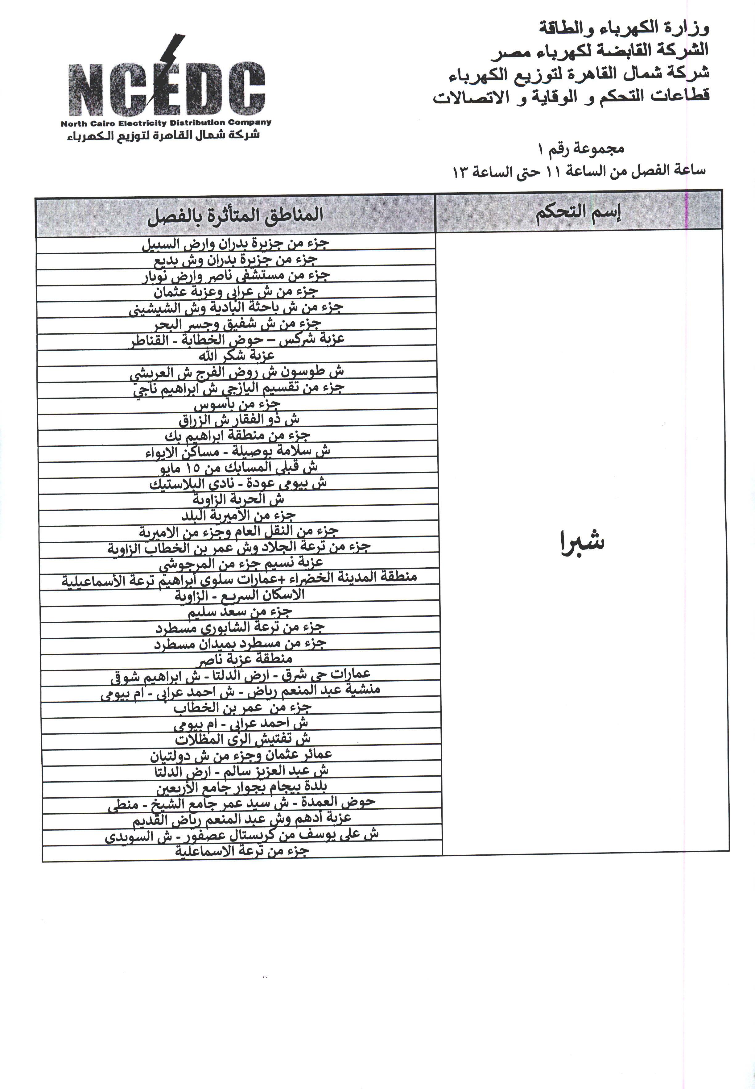 مواعيد تخفيف الأحمال اليوم بمدينة نصر وشبرا والقاهرة الجديدة