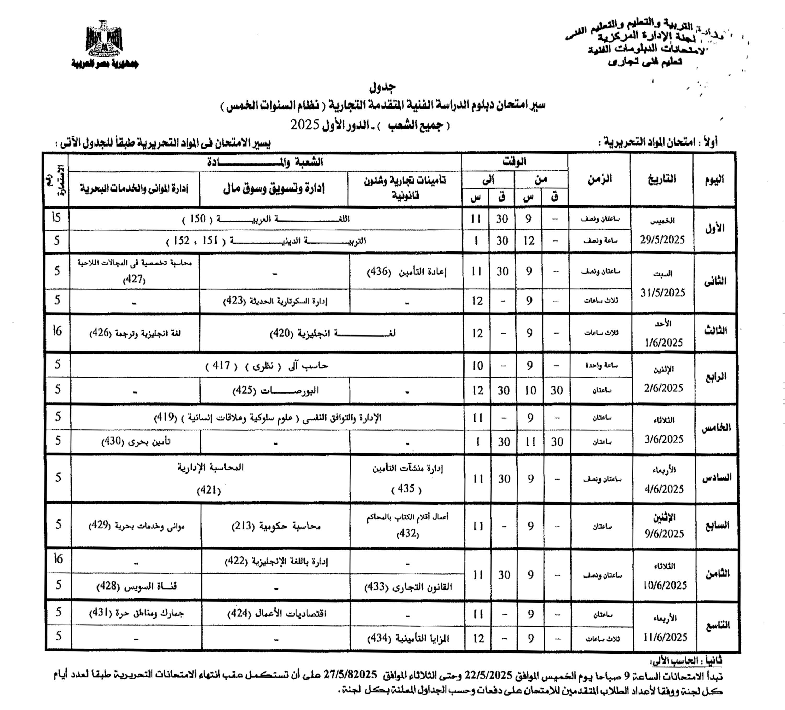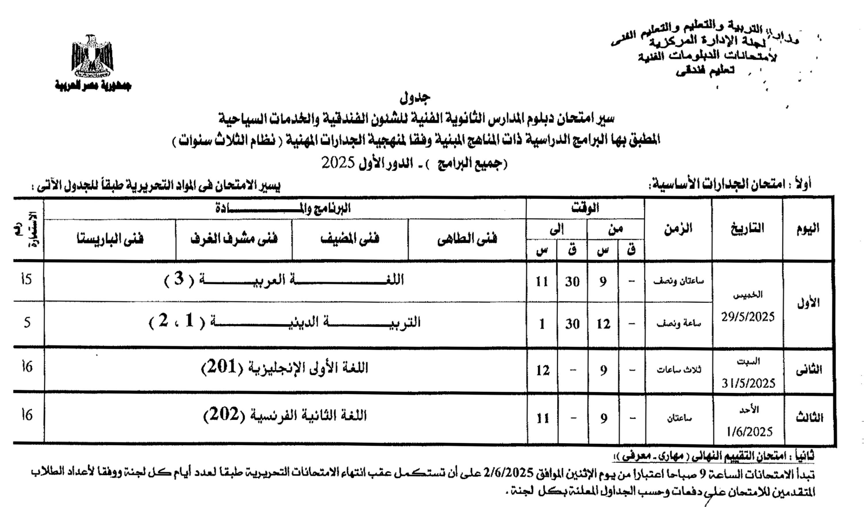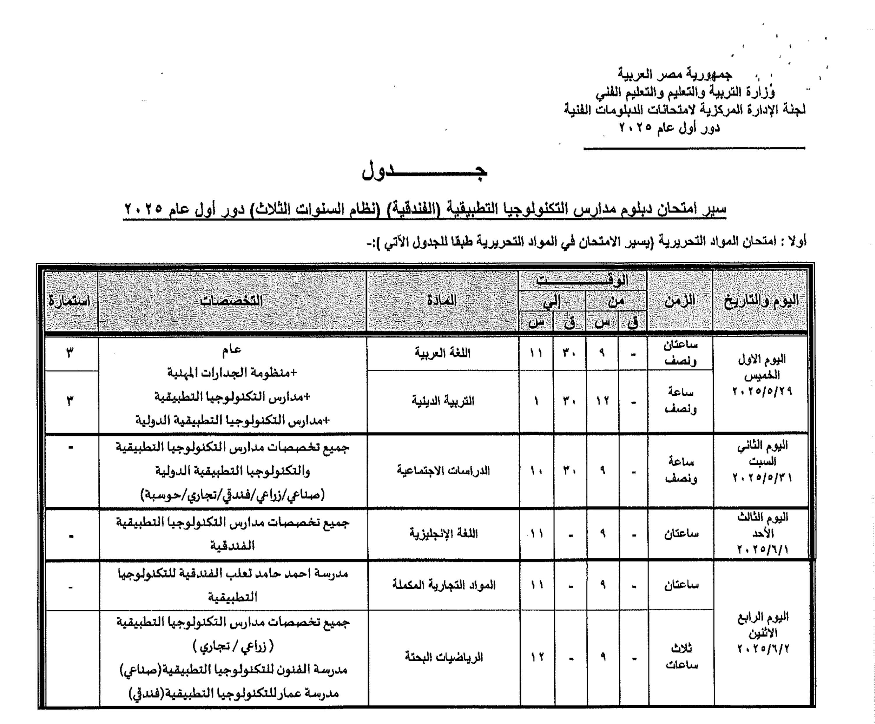 وزير التعليم يعتمد جدول امتحانات الدبلومات الفنية