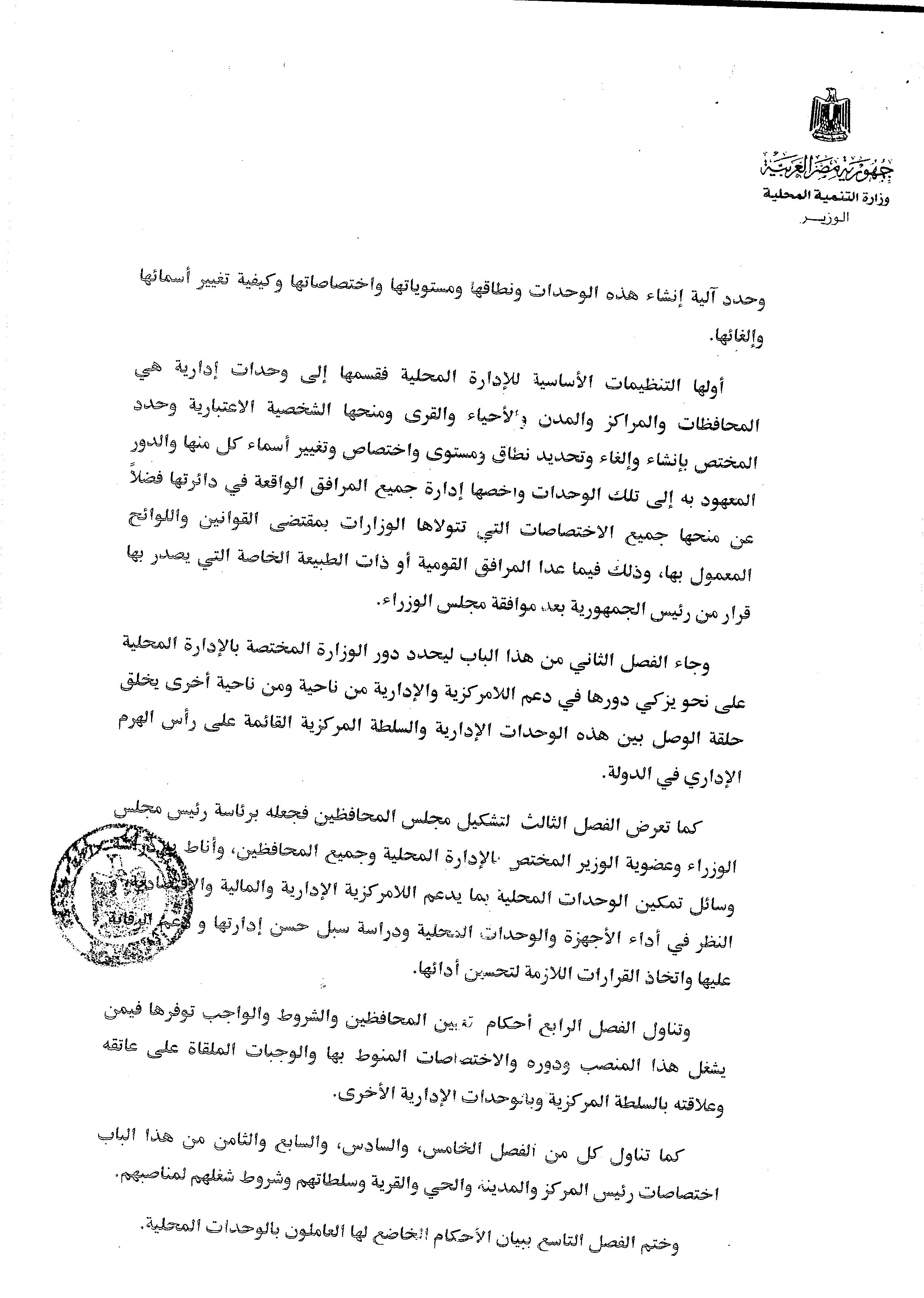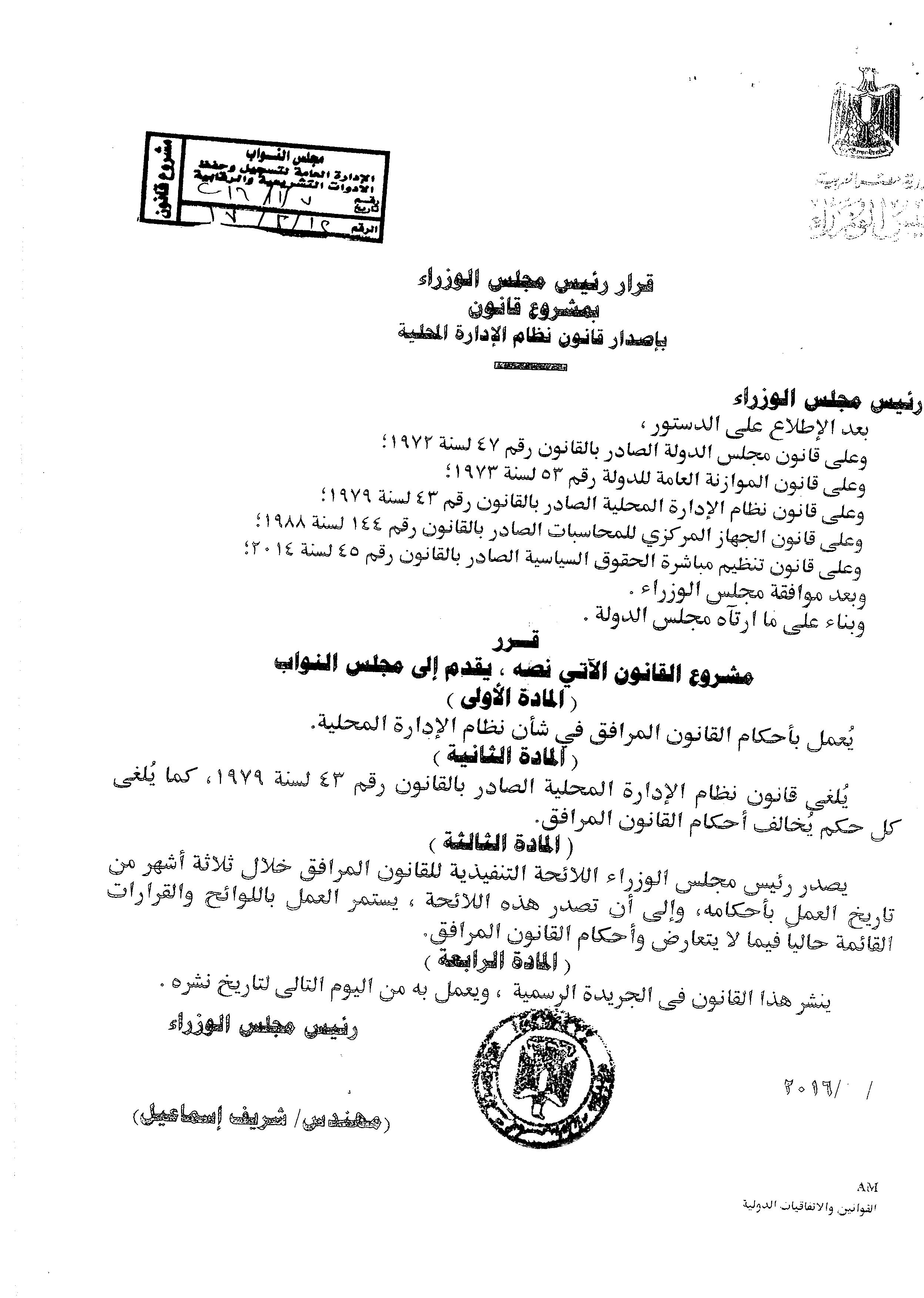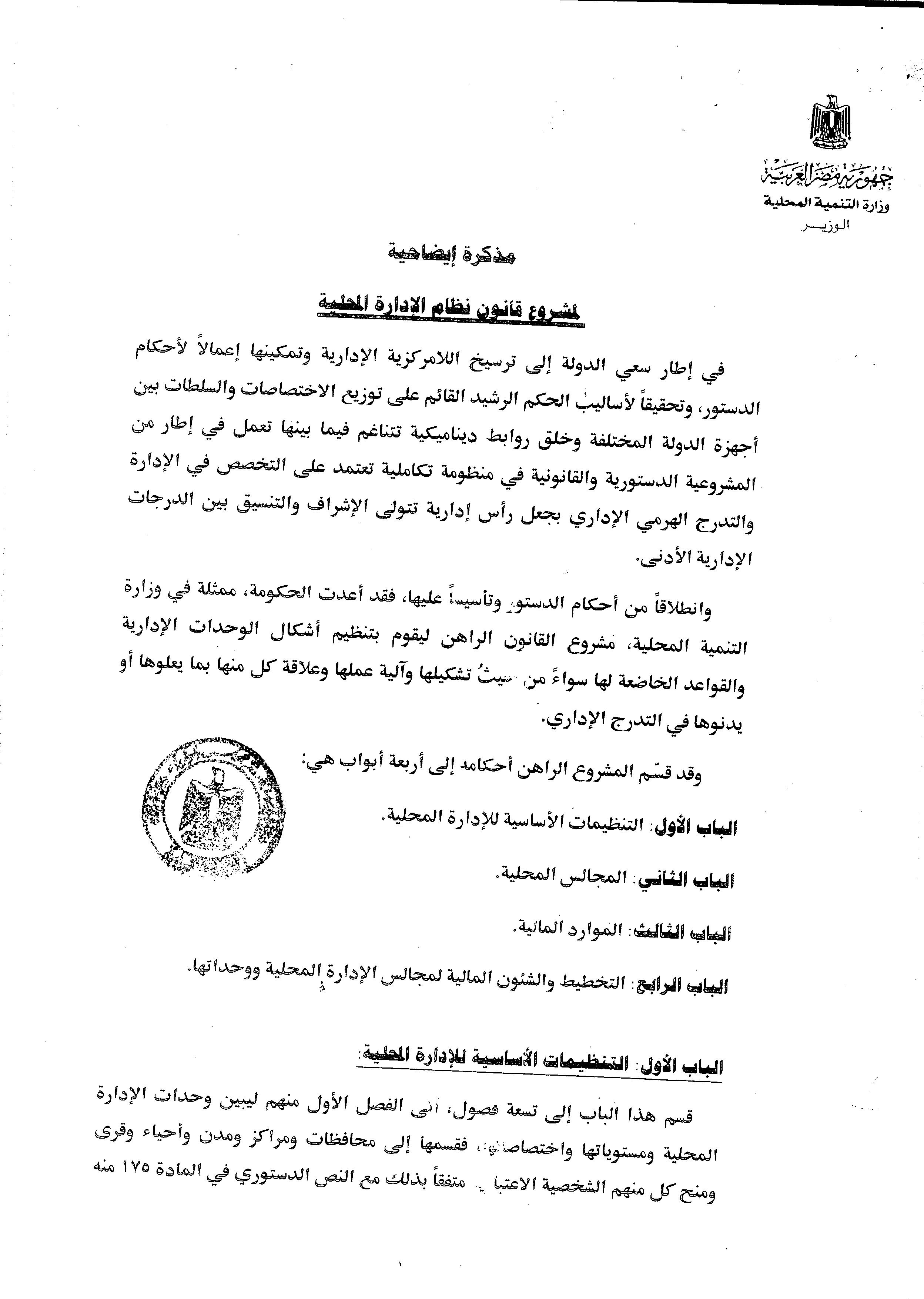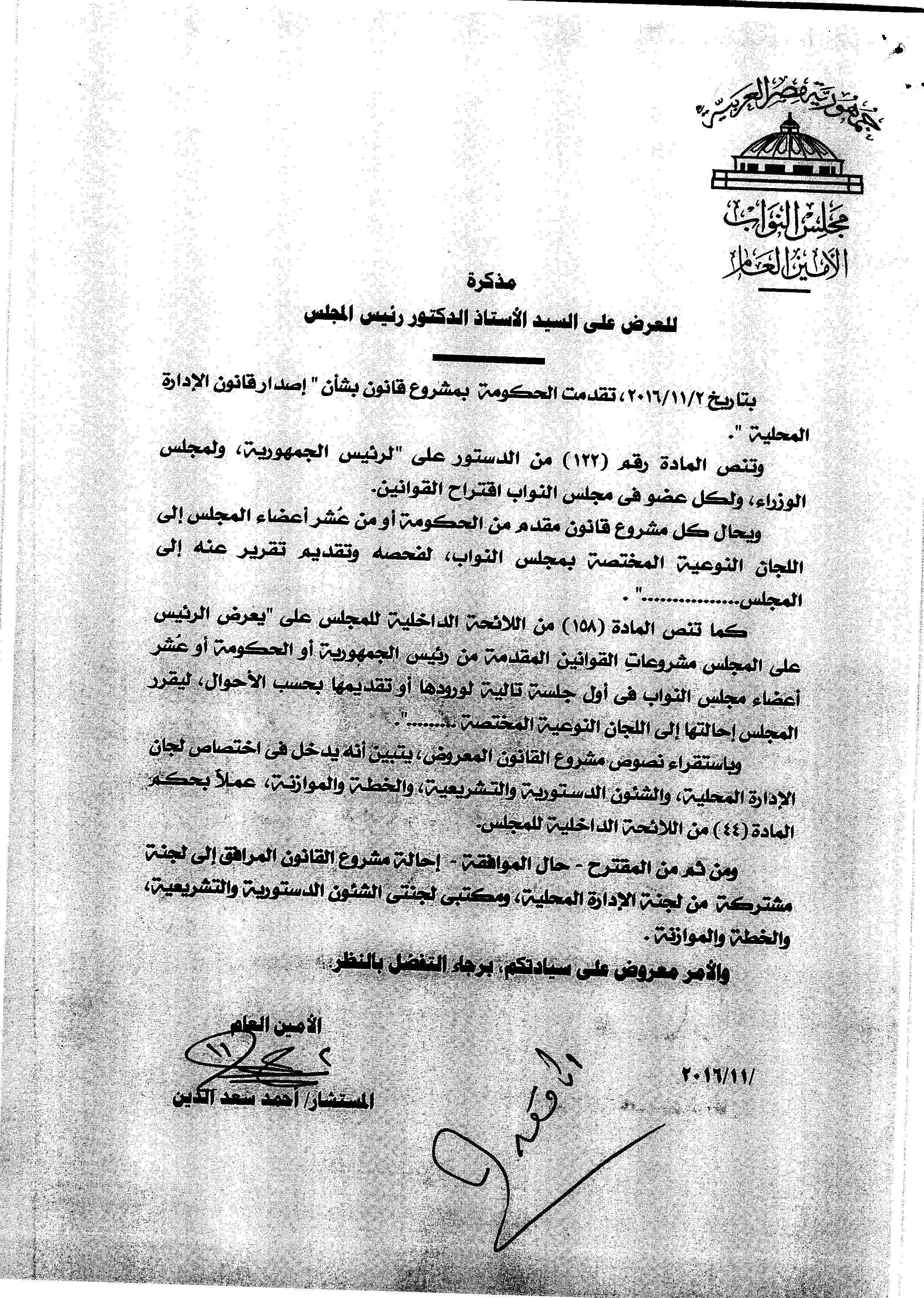 ننشر نص مسودة مشروع قانون الإدارة المحلية قبل المناقشة فى مجلس النواب