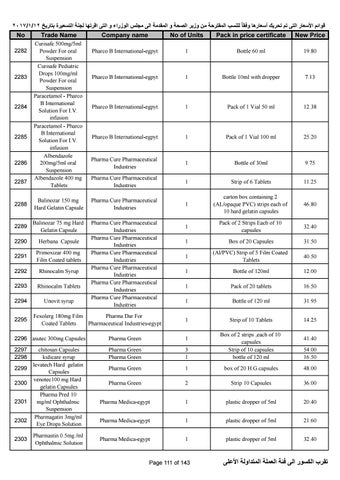 Curisafe 500mg/5ml Powder For oral Suspension Curisafe Pediatric Drops 100mg/ml Powder For oral Suspension Paracetamol - Pharco B International Solution For I.V. infusion Paracetamol - Pharco B International Solution For I.V. infusion Albendazole 200mg/5ml oral Suspension Albendazole 400 mg Tablets
