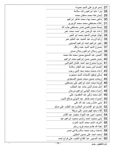 سمر فرج على السيد حمودة يارا عابد ابراهيم راشد سالمة ايمان طه محمد سعفان محمد ماهى محمد بهاء محمد طاهر ابراهيم عالء مصطفى محمد محمد الزبيرى بسمة محسن فتحى نصر مصطفى جاب هللا دعاء عبد الرحمن عمر احمد محمد عمر نهال عوض السعيد محمد ابو الخير رانيا ثروت عبد الحميد عبد الحليم عمر عبير ابراهيم احمد ابراهيم الحسينى ممدوح السيد السيد عبده زنكل منى رسالن ابراهيم رسالن صابر الحسن عبد السميع حسين محمد طه محمد حسن خميس حسن ابراهيم محمد ابراهيم مروة ممدوح سيد احمد عثمان الحواشى ابتسام أنس محمد عبد الغفار سالمة دعاء مدحت محمد سعد الدين رجب سالى توفيق الشحات السيد محجوب ريحاب حسين محمد حسين الصعيدى فريدة محمد احمد ابراهيم على مصطفى امل حسام الدين حامد عبد المطلب اسماء محمد الهامى ابراهيم سرحان امل محمد زكى عبد المقصود على اضواء احمد طاهر عبد المولى صالح الديب منى عادل رجب عبد هللا على طارق ابو القاسم ابو المكارم عبد الطلب على مسلم لقاء سعيد فهيم حسن على مريقة محمود امين عبد الجواد مخيمر عبد القادر منى محمود احمد رشدى محمود ابراهيم عيد اشرف السيد محمد السيد العزب هبة هللا هشام محمد فريد رستم مدحت رجب محمد سالم رفاعى نصر محمد احمد على حسين الحليلى عبد الصبور عبد الفتاح الطيب على فراج احمد