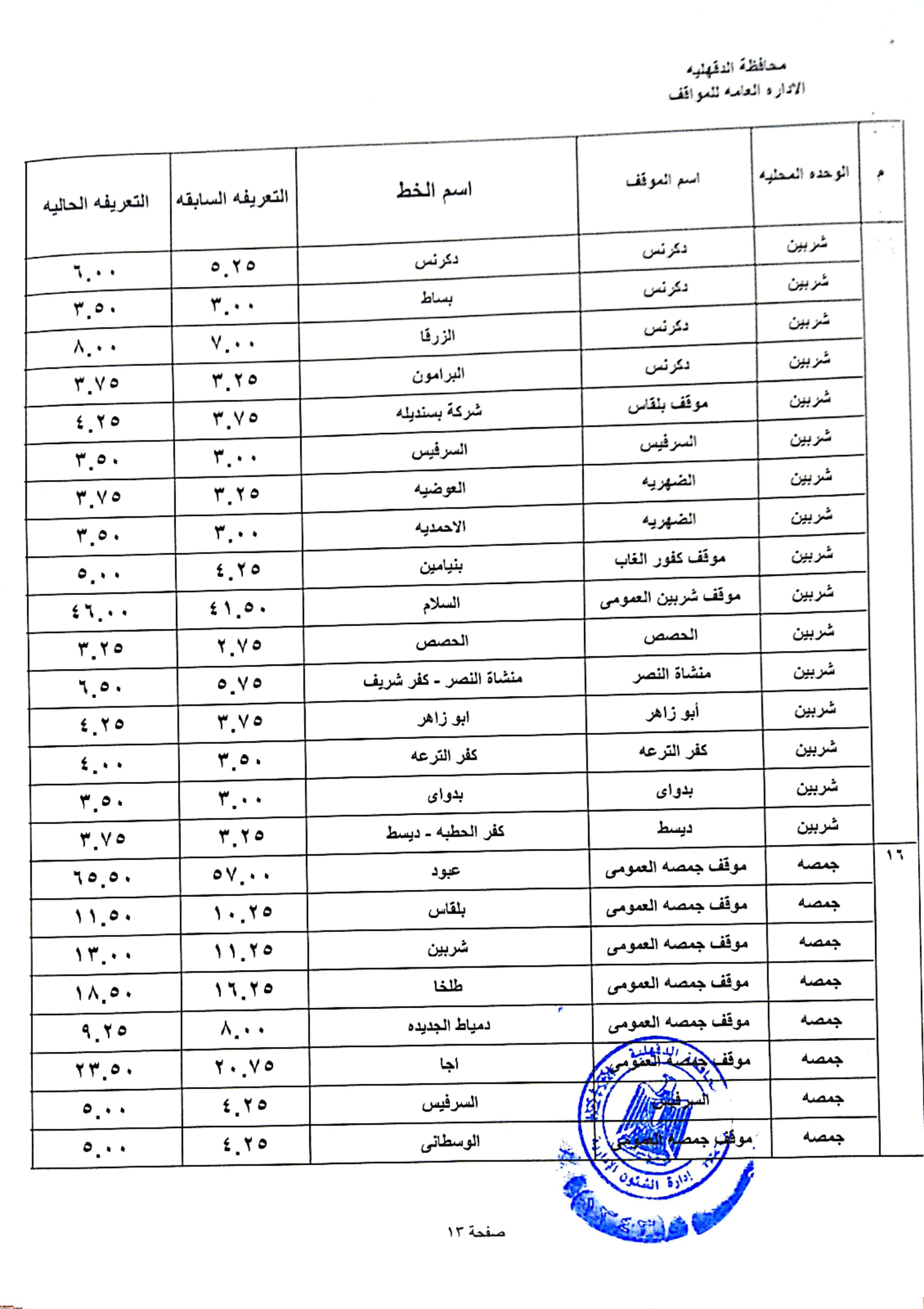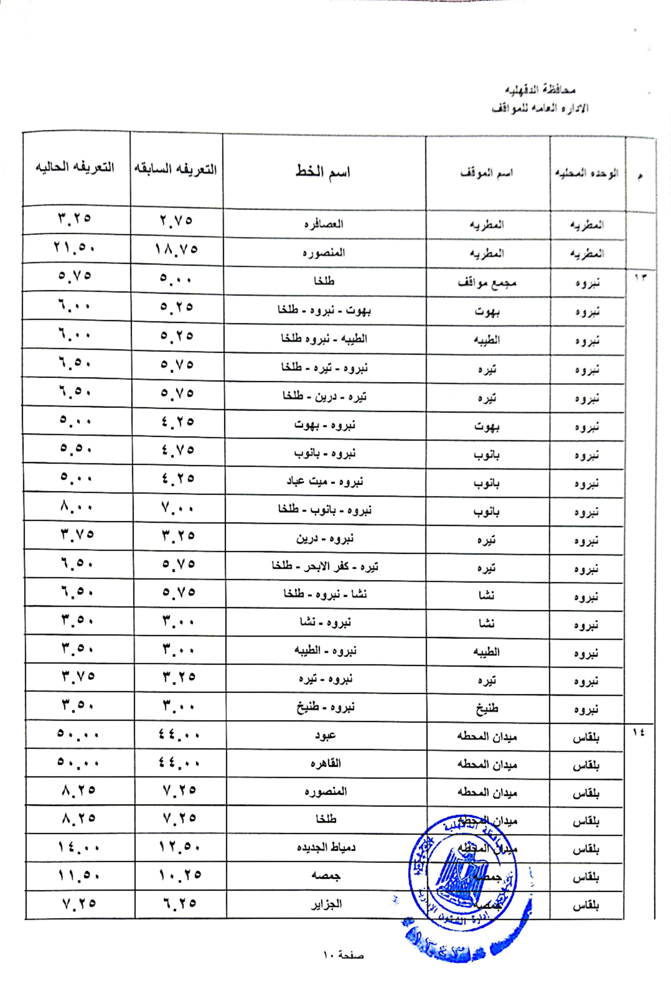 محافظ الدقهلية يعتمد زيادة تعريفة المواصلات العامة لنقل الركاب للخطوط الداخلية والخارجية