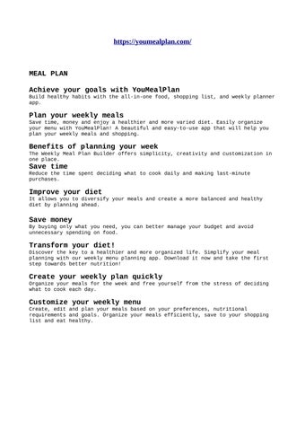 MEAL PLAN Achieve your goals with YouMealPlan