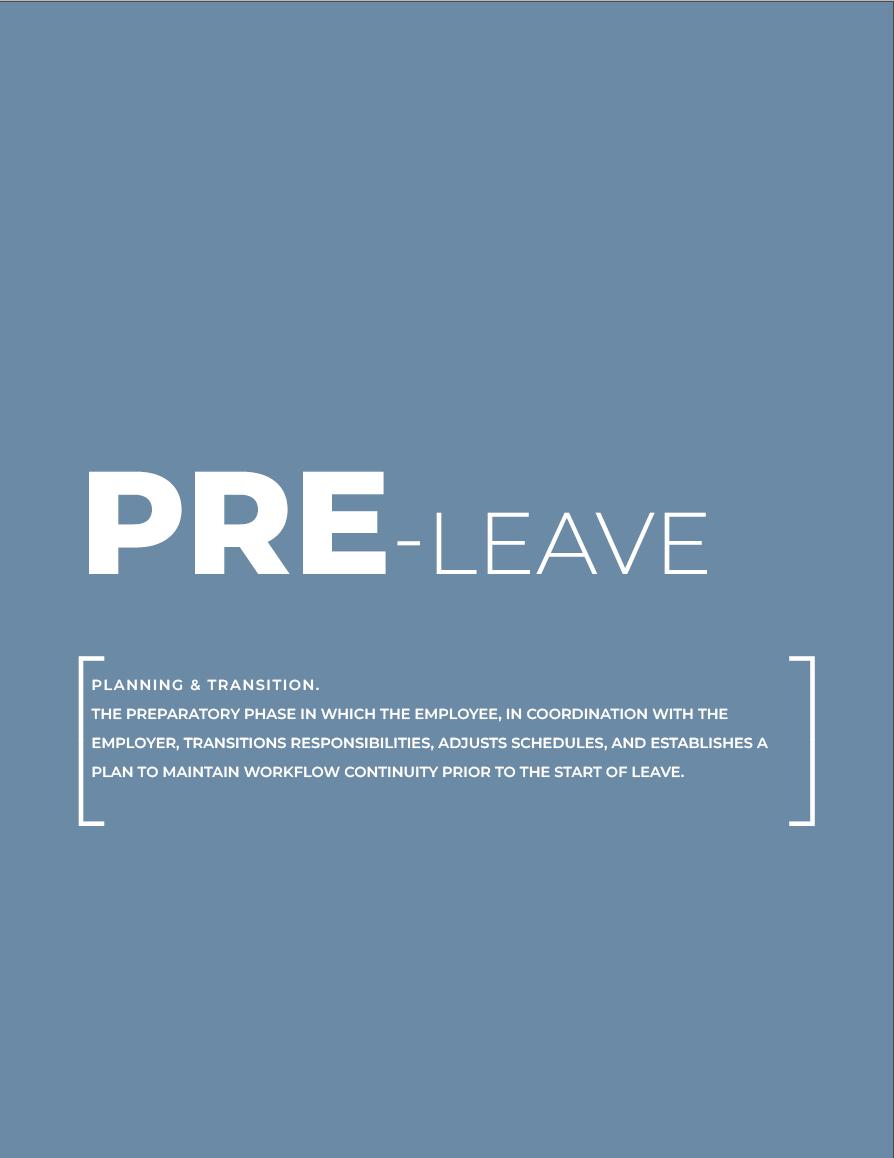 THE PREPARATORY PHASE IN WHICH THE EMPLOYEE, IN COORDINATION WITH THE EMPLOYER, TRANSITIONS RESPONSIBILITIES, ADJUSTS SCHEDULES, AND ESTABLISHES A PLAN TO MAINTAIN WORKFLOW CONTINUITY PRIOR TO THE START OF LEAVE.