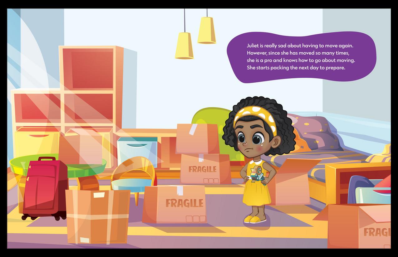 und a lot due to the gentrification happening in their communities. Moving so frequently has caused Juliet to feel down, and she has a lot of anxiety. With the help of the New Kid Rule Book, she’s able to overcome her anxious feelings and is more comfortable at her new school.
