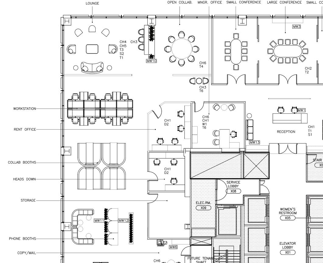 The concept of the Switch Coworking office is to provide a shared space for workers, offering an interchangeable multi-functional environment, including conference rooms, private offices, collaborative spaces, an auditorium, a kitchenette, and a breakroom. The office is sourced by trades, Haworth and Steelcase, to give individuals maximum comfort and flexibility. The space is easily navigated using wayfinding tools through lighting and architectural details. The design also incorporates colors to provide a creative environment that separates areas of work. Switch Coworking caters to all individuals seeking a driven and unique workspace.