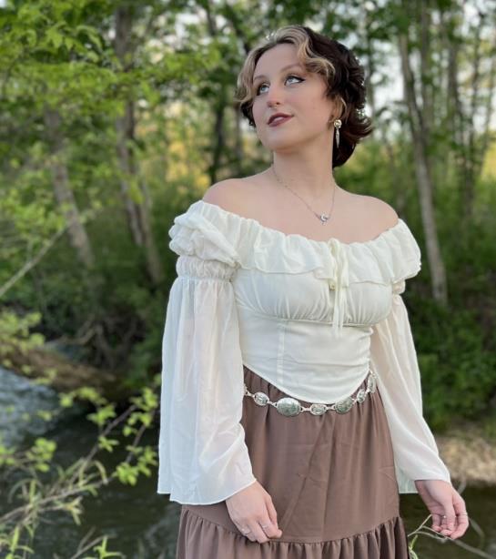 Kit graduated with a major in Theatre Performance and completed numerous creative projects in their discipline under the mentorship of Gina Dropp and Dr. Jen Julian. They also appeared in several campus performances, including the lead role in Rogers & Hammerstein’s Cinderella. For Undergraduate Research Day 2023, they helped write and performed in the collaborative play, And Then We Saw the Stars Again, and for URD 2024 presented a reading of The Insectarium, an original one-act play they crafted in Creative Writing and Drama. Kit notes that they are heavily inspired by the work of Henrik Ibsen, though they seek to produce work that is “uniquely [their] voice.”