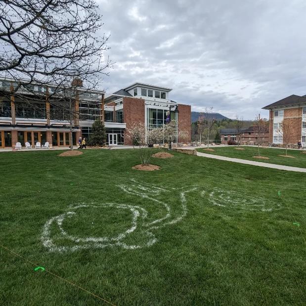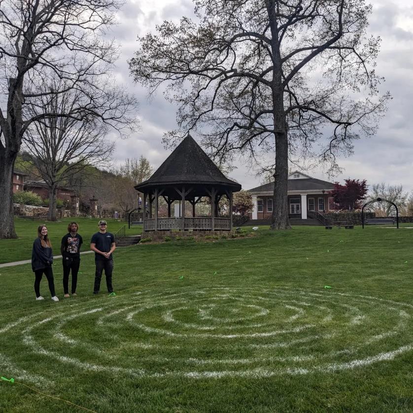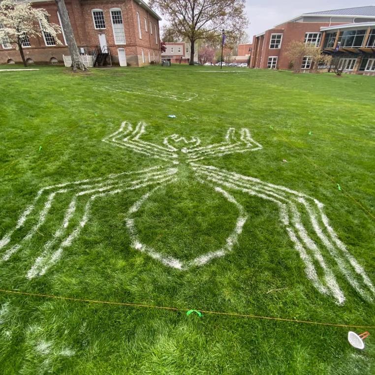 Students in Camden Goddard’s Sculpture class and Mary Brink’s Art Appreciation class were assigned to groups to study the ancient Nazca lines in Peru. They researched the history of the lines and their discovery, as well as the various methods scholars believe might have been used to create these lines. Finally, they tested out their hypotheses, using their selected techniques to recreate a specific design on the campus lawn.