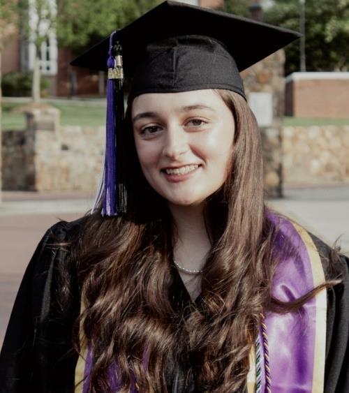 Sophia graduated with a major in Biology and a minor in Psychology. She was also one of last year’s Ledford Scholarship recipients, working under the mentorship of Dr. Jennifer Schroeder to investigate cancer-causing pathways and potential preventative measures. She presented a talk, “Effects of EGCG on CYP1A1 promoter activity in mouse liver cells,” at Undergraduate Research Day 2024 and was the third Distinguished Research Scholar to present work at the Georgia Academy of Science last year. She states that her research experiences will significantly aid her as she completes her degree and goes on to apply to medical school.