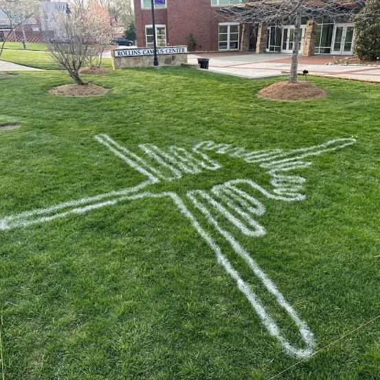 This project will be imitating the form usually referred to as the astronaut from the ancient Nazca Lines. The materials used will be several ten pound bags of flour and a carefully planned and spaced string grid with a scale of twenty-five by twenty-five feet. This chosen process is used because of ease of formatting and accessibility of materials. This project will be installed on the lawn in front of the Rollins Campus Center. It will be large enough to be clearly seen from higher floors and roofs of buildings around campus.