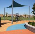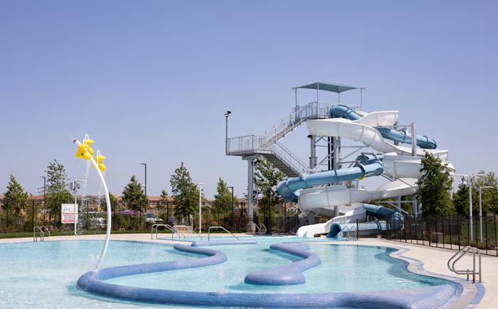 Features large multi-age oasis-in-thedesert themed play area with spray ground, picnic areas with shade structures, lighted basketball and pickleball courts, cornhole game area, and dog park.