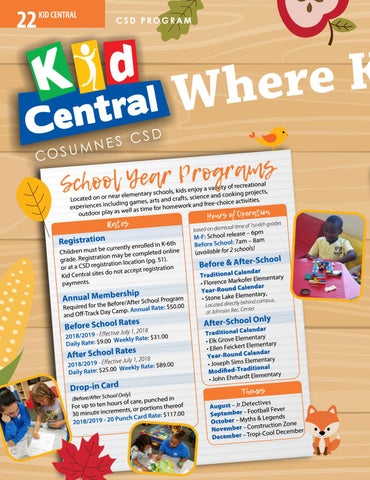 d in K-6th currently enrolle Children must be et mpl ed online tion may be co grade. Registra n (pg. 51). stration locatio gi re D CS a at or stration not accept regi do s te si l ra nt Kid Ce payments.