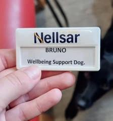 Bruno, who goes into work with Hayley every week and even has his own official ‘well-being support dog’ badge, has an uncanny knack of bringing out the best in people.