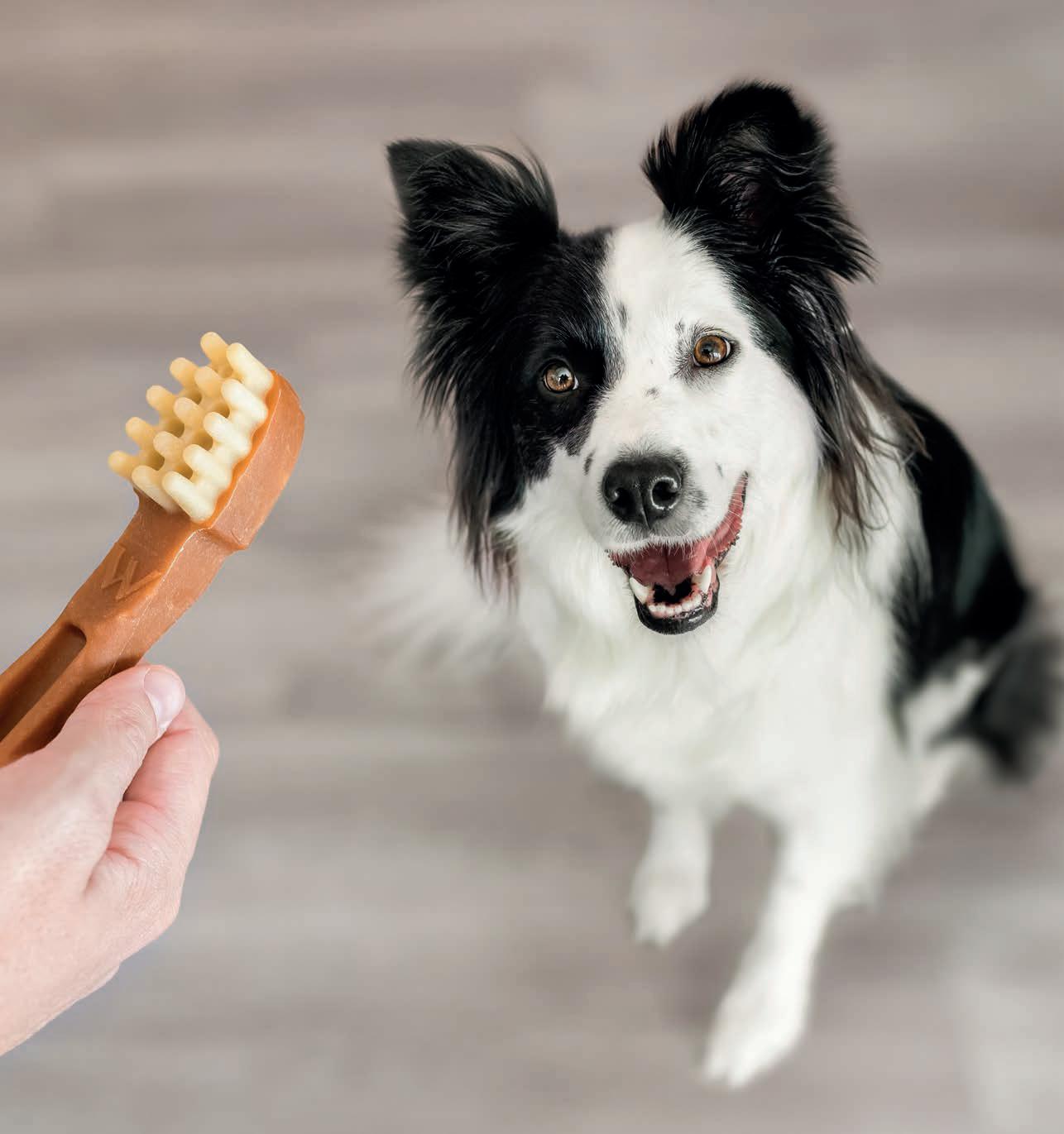 1 ... More chew time = more cleaning time* More effective at reducing plaque & tartar** Daily support for your dog’s oral health *Based on studies comparable products conducted by an independent kennel. **When chewed daily. Freshens Breath - Supports healthy Gums - Reduces Tartar - Reduces Plaque. Contact sales@kennelpak.co.uk Daily Dental Treats