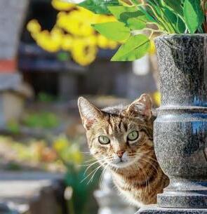 8 Place pots and planters around the garden to give your cat lots of things to hide behind so he can move around stealthily. Your cat will appreciate this particularly near the cat flap or where he enters his outdoor space.
