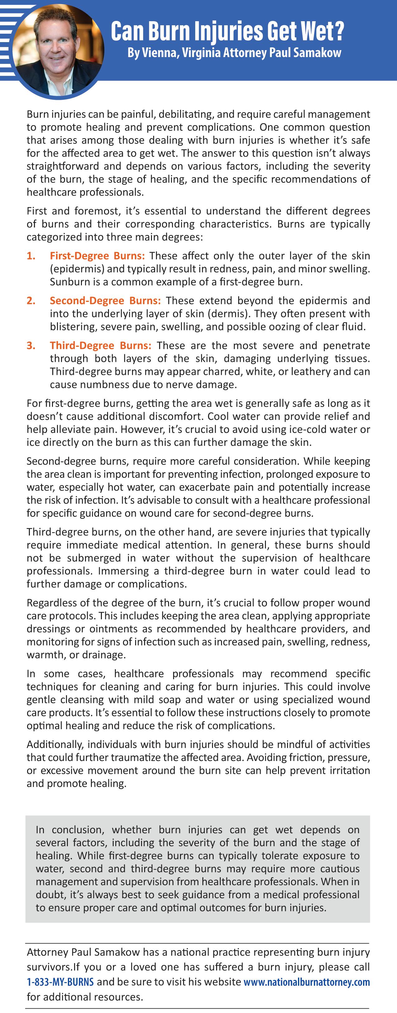 | Can Burn Injuries Get Wet? | By Paul Samakow, Attorney