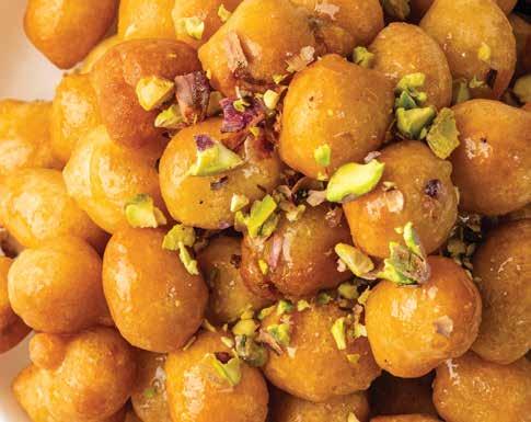 While the loukoumades are still warm, drizzle the honey syrup over them, making sure to coat each doughnut evenly. You can also dip the loukoumades directly into the warm syrup for a more thorough coating.