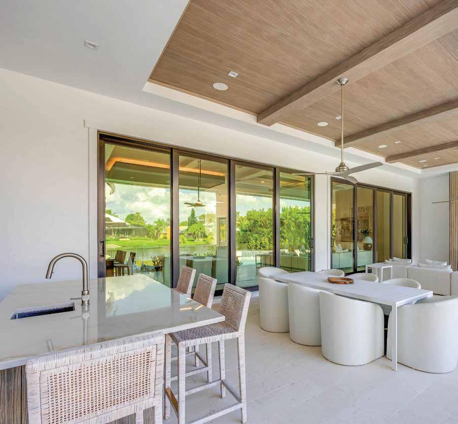 The result is a sprawling, single-level home, which is a rarity in its neighborhood and the largest of its kind. Inside, the aesthetic strikes a balance they describe as coastal elegance: clean lines, refined textures, and a palette that feels both serene and sunwarmed. It’s elevated but comfortable enough to accommodate wet grandkids running in from the pool. Every room carries a sense of harmony and hospitality, a reflection of their belief that design should invite, not intimidate.