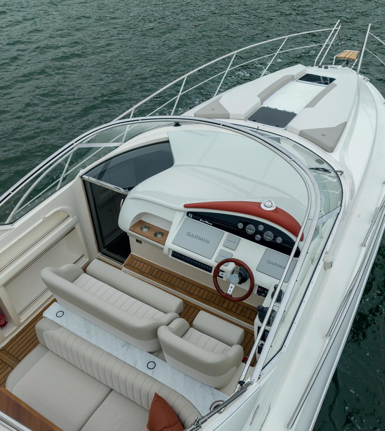 Innovative design, luxurious and spacious, this is one of the finest sports cruisers we’ve seen. The build quality is impressive, from the woodwork to the upholstery, all exudes luxury. She has a fantastic specification including IPS joystick control, an 11kW Generator and reverse cycle airconditioning. If you are looking for the ultimate sports cruiser, then look no further!
