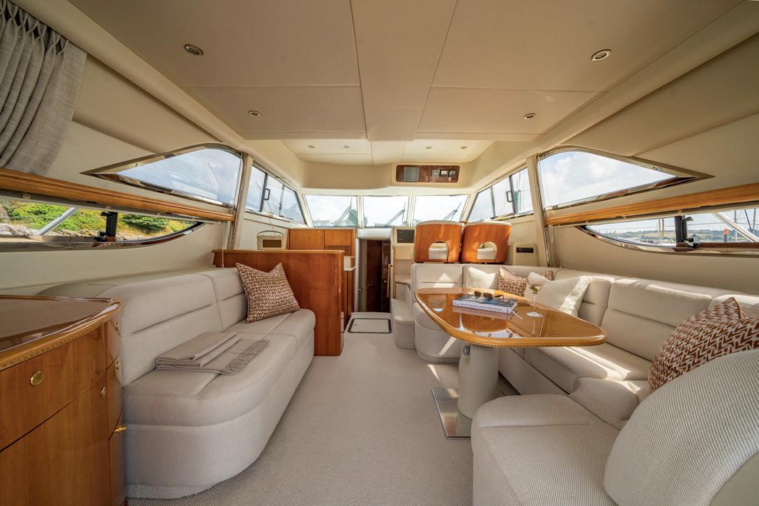 Here is the superb ARCHERS Princess V57 finished with a classic white hull and black waterline stripe and fitted with 2 x Volvo D13 900’s with low engine hours with full Volvo main dealer service history. From the satin walnut veneer to the white leather seating, she is a real head turner and is one not to overlook, or you’ll be kicking yourself for a long time.