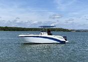 One of the highest specced Axopar 28’s ever made to the market, she even has a Joystick and skyhook to hold the boat via GPS on the spot!! This is the ultimate 28, fitted with twin Mercury 200HP engines, a joystick for effortless handling, dual glass screen plotters, heating, new ownerdesigned harbour cover to protect all seats and so much more!