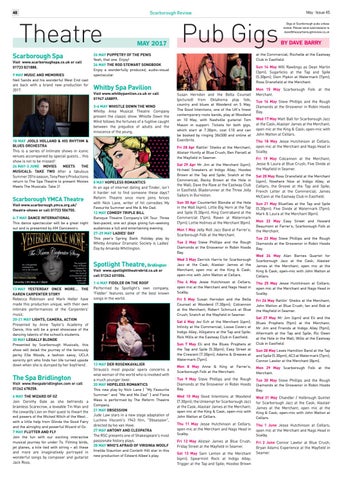 Visit www.scarboroughspa.co.uk or call 01723 821888. 9 MAY MUSIC AND MEMORIES Neil Sands and his wonderful West End cast are back with a brand new production for 2017.