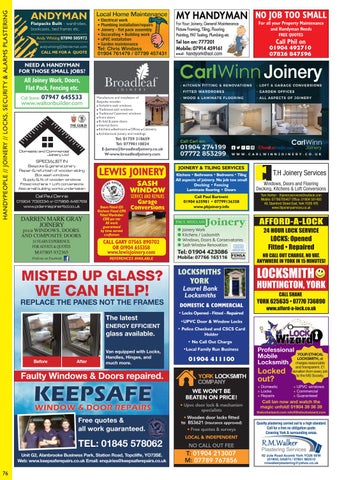All aspects of joinery. No job too small Decking • Fencing Laminate flooring • Doors Call Paul Bartnett 01904 635981 • 07799136358 www.pbjoinery.info