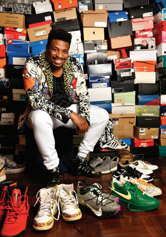 BY DAY TEBOGO IS A CREATIVE DIRECTOR at a television network, but in his spare time he playfully labels himself as “an urban culture student that loves sneakers”. With an incredible collection of more than 400 pairs, he is well on his way to becoming a master.