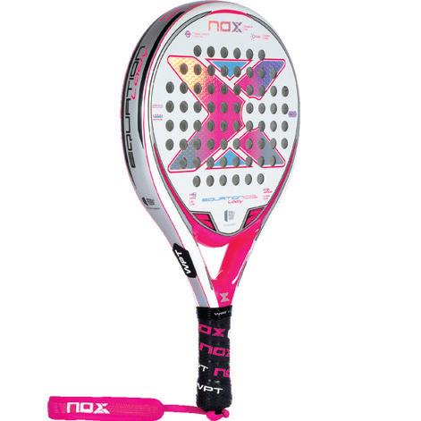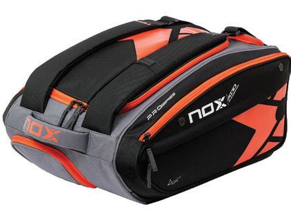 FROM LEFT TO RIGHT: Nox Equation Lady WPT Racket, R4 999,95, and Nox AT10 Trolley