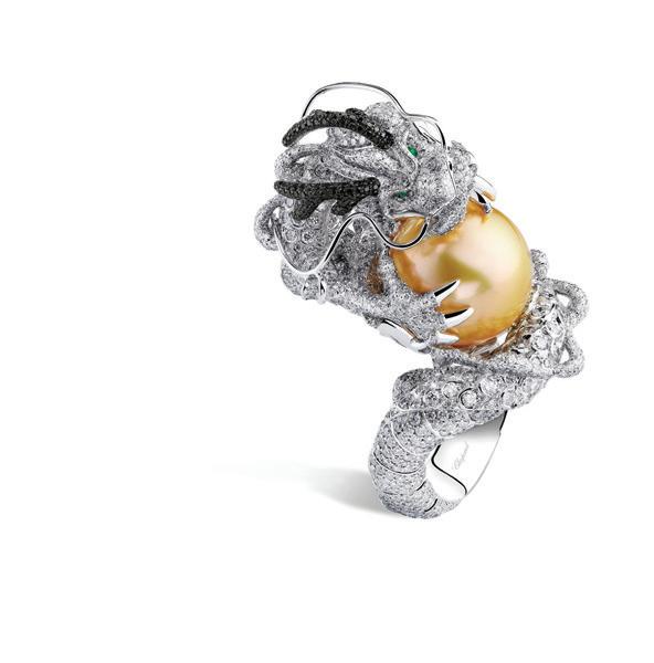 Yoko London’s Aurora collection features naturally coloured pearls set in 18kt white gold and a mesh of diamonds. The Australian South Sea, Tahitian, Golden Indonesian, and Freshwater pearls are all hand selected. yokolondon.com