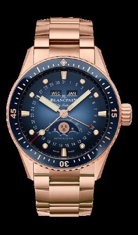 Blancpain’s extension to the Fifty Fathoms Bathyscaphe line is this gorgeous Quantième Complet Phases de Lune in red gold. Its calendar complication with a charming moon phase displays the date, day of the week, and month. The dials of Blancpain’s complete calendar watches (this one is in sunburst blue) depict lunar cycles, reflecting the enduring connection between watchmaking and astronomy. POA, blancpain.com