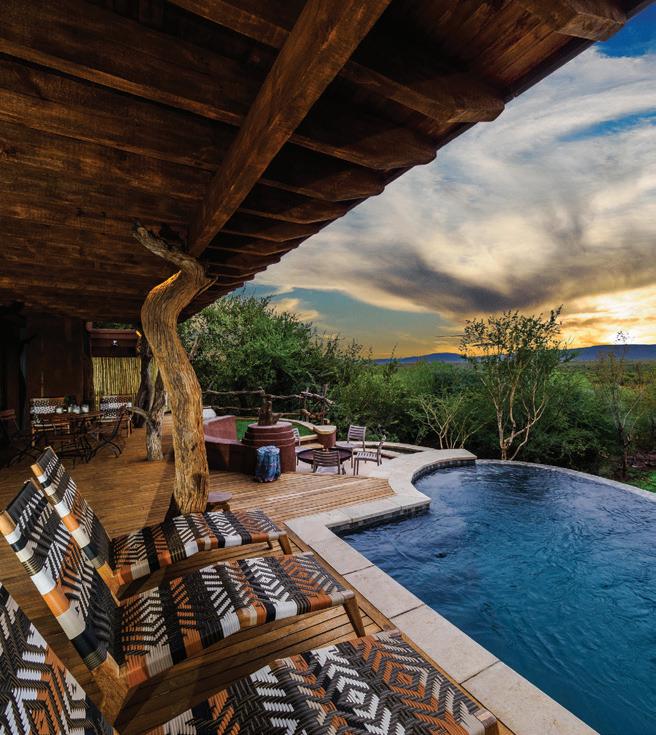 Located in the magnificent Soutpansberg Mountains in Limpopo, Few & Far Luvhondo is an exclusive lodge that o ers an immersive experience in one of the country’s most pristine and diverse ecosystems. Combining sophisticated design with sustainability, you’ll find elegant suites that open onto panoramic views of the lush forests, dramatic cli s, and winding rivers below. Guests can go on guided walks, birdwatching expeditions, and cultural encounters with local Venda communities, all while enjoying the lodge’s secluded and serene setting. Few & Far Luvhondo opens in December 2024. Exclusive SADC rates include a 25 percent special on four-night stays.