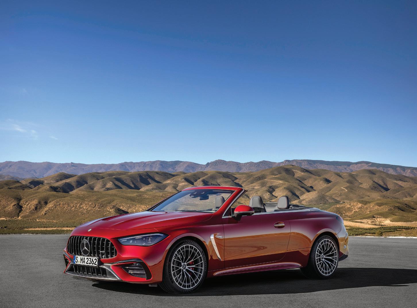 Scheduled to hit South African roads in the first quarter of 2025, the Mercedes-AMG CLE 53 4MATIC+ Cabriolet comes packed with performance and comfort. Beneath its sculpted hood lies a 3.0-litre in-line sixcylinder engine with twin turbocharging, delivering 330kW of power and 560Nm of torque, with a temporary over-boost function pushing torque to 600Nm for added thrills. An integrated starter generator adds a brief 17kW and 205Nm, feeding the 48-volt electrical system. Paired with the AMG Speedshift TCT 9G transmission and AMG Performance 4MATIC+ all-wheel drive, this setup launches the cabriolet from 0 to 100km/h in 4.2 seconds.