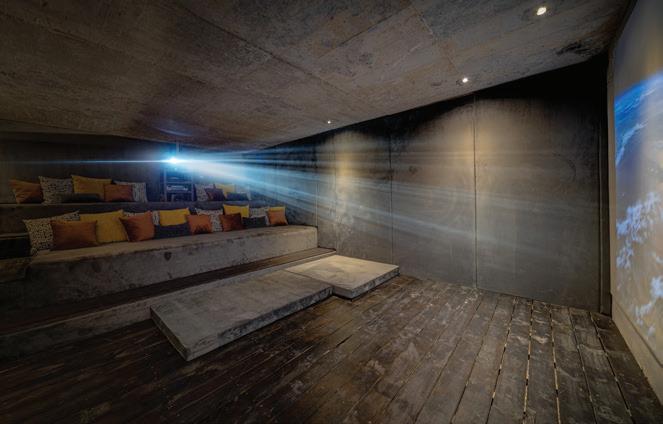 For dining, guests can enjoy the daily breakfast and harvest table prepared by the villa’s dedicated chef. You can then opt for a privately prepared lunch or dinner at the 12-seater indoor dining table, the outdoor undercover dining space, or in the privacy of your suite’s own lounge. Alternatively, ask your concierge to prepare a detailed dining itinerary for your stay and take advantage of the incredible restaurants in Cape Town. During our stay, we’re spoilt with indulgent breakfast spreads that are varied each morning – the likes of homemade scones, fresh fruit, and delectable hot options ticking all the boxes. Between meals, charcuterie boards and wine from the on-site cellar are available to be served on the private decks, in the main lounge, or poolside in the garden. Then a quick descent down a short flight of stairs reveals an entertainment cove with a cinema for movie nights.