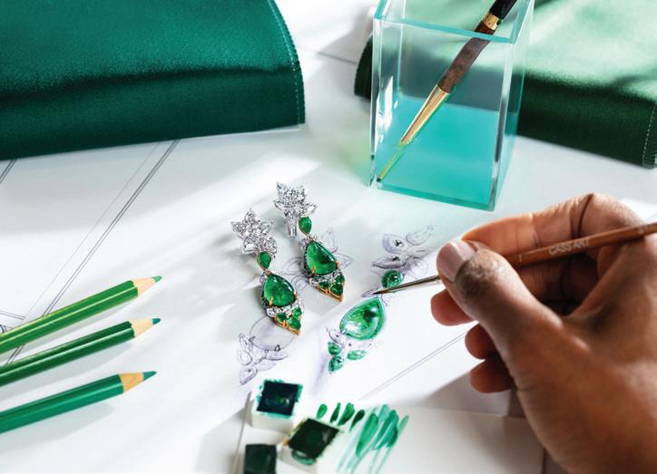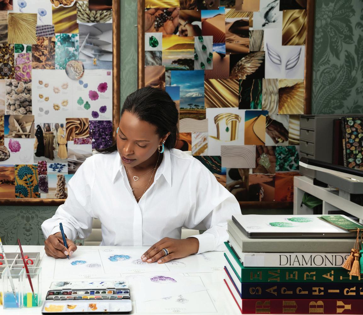 her formal education. She then went to London where she was scouted as a model, leading to moves to Paris and New York, before finally settling back in London. She’s called Gra Diamonds, De Beers, and Sotheby’s her professional homes, but now has her own atelier on London’s Bond Street. Vania talks to us about heritage as the primary memory deposit from which she draws inspiration, as well as her complex quest for ethical sourcing and redirecting wealth back to the African regions where precious materials are sourced (page 26).