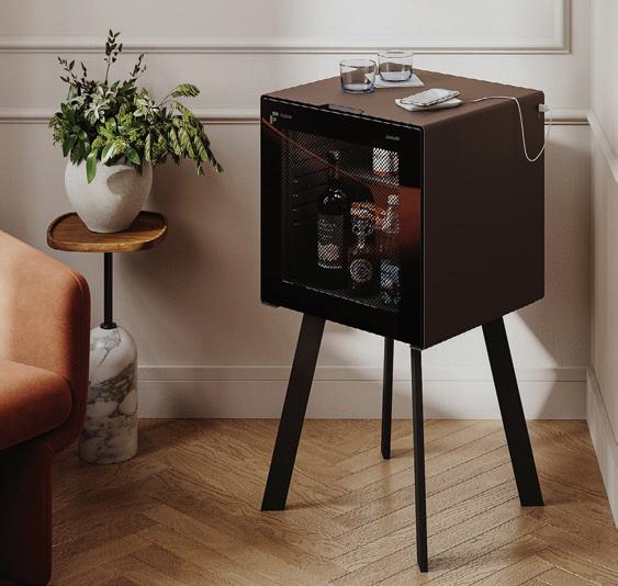 INDELB FRIDOM CUBE FREESTANDING MINIBAR: Designed by Massimo Mussapi, these mini fridges can hang on walls, stand on tables, or be freely positioned. Equipped with Ecosmart technology, they boast quiet operation and top-tier energy e ciency with Timer, Smart, and Eco modes. POA, indelb.com