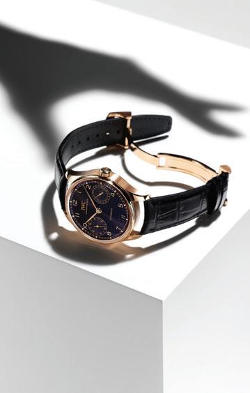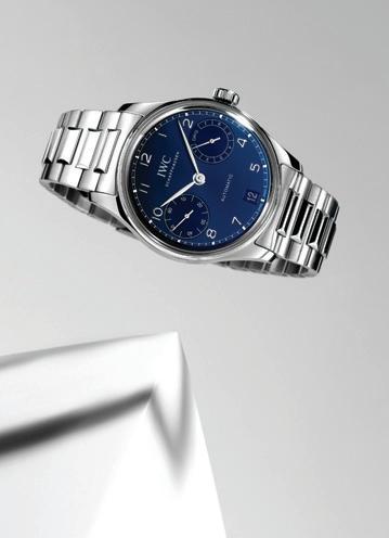 The Portugieser Automatic is distinguished by its balanced dial design that includes the power reserve indicator at three o’clock and the small seconds at nine o’clock. The new Portugieser Automatic 42, which builds on the timeless DNA of the original (which debuted in 2000), is presented as a modern dress watch, while the new Portugieser Automatic 40 (first introduced in 2020), comes in a compact 40mm case and features a clean dial with the small seconds at six o’clock and no date window. Both models are powered by the IWC-manufactured 82200 calibre and are available in two options: an 18-karat white gold case, Horizon Blue dial, rhodium-plated hands and appliqués, and blue calfskin strap; or an 18-karat 5N gold case, Obsidian black dial, gold-plated hands and appliqués, and black alligator leather strap.