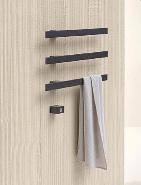 I CHING TOWEL WARMER: The award-winning towel warmer from Tubes Radiatori Italy comes in various lengths and can be installed horizontally or vertically. It is programmable for energy e ciency, and maintains a purist, cablefree appearance. From £1 336, tubesradiatori.com