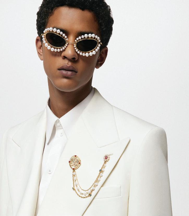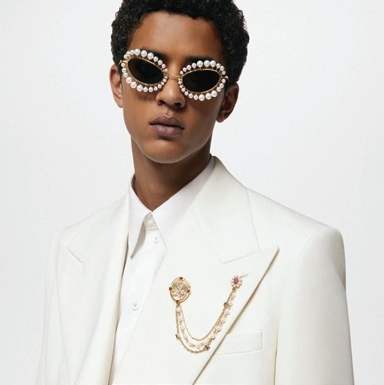 1. Louis Vuitton’s LV Dynasty Pearls Brooch showcases the brand’s craftsmanship, inspired by Pharrell Williams’ inaugural show. Featuring intertwined L and V initials, the brooch is adorned with brilliant white and blue zircons encased within a design reminiscent of an aristocratic crest, accented with ruby-hued stones and luminous pearl beads. R23 400, louisvuitton.com