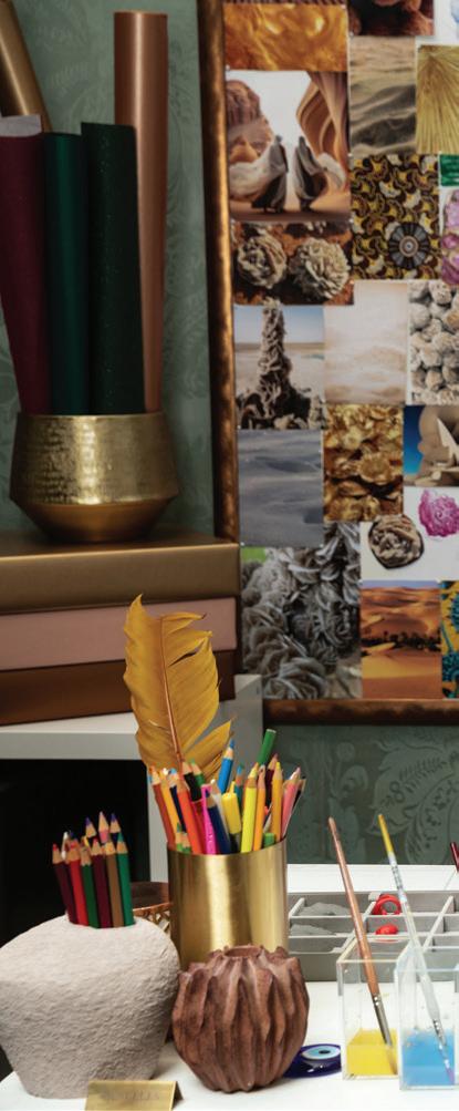 automated into her subconscious, yet are spontaneous and accumulate like layers of thoughts and ideas. “The collection is a celebration of the raw beauty of nature through our earthy, textured palettes, metallics, and crystal-like shades of shimmery minerals,” she affirms.