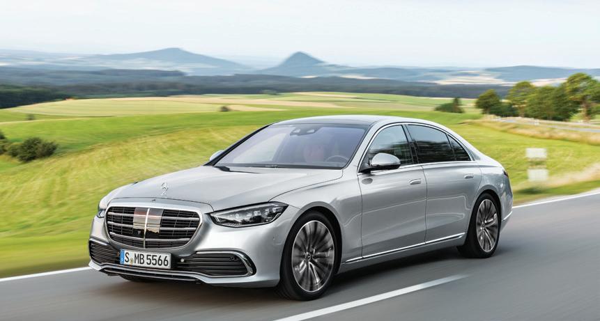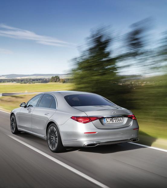 The designers have created feel-good ambience with an elegant and light-filled interior. In terms of exterior design, the S-Class redefines the classic sedan with its short front overhang, long wheelbase, and balanced proportions, with a wide track and flushmounted wheels for a muscular appearance. The design simplifies character lines, focusing instead on sculptured surfaces that play with light. The front showcases a highstatus grille and sleek headlamps with the iconic three-point daytime signature. Notably, the flush-mounted door handles, which extend electrically, enhance the car’s look. At the rear, the S-Class’ stance is accentuated by detailed, animated rear lights, ensuring it stands out with unmistakable quality.