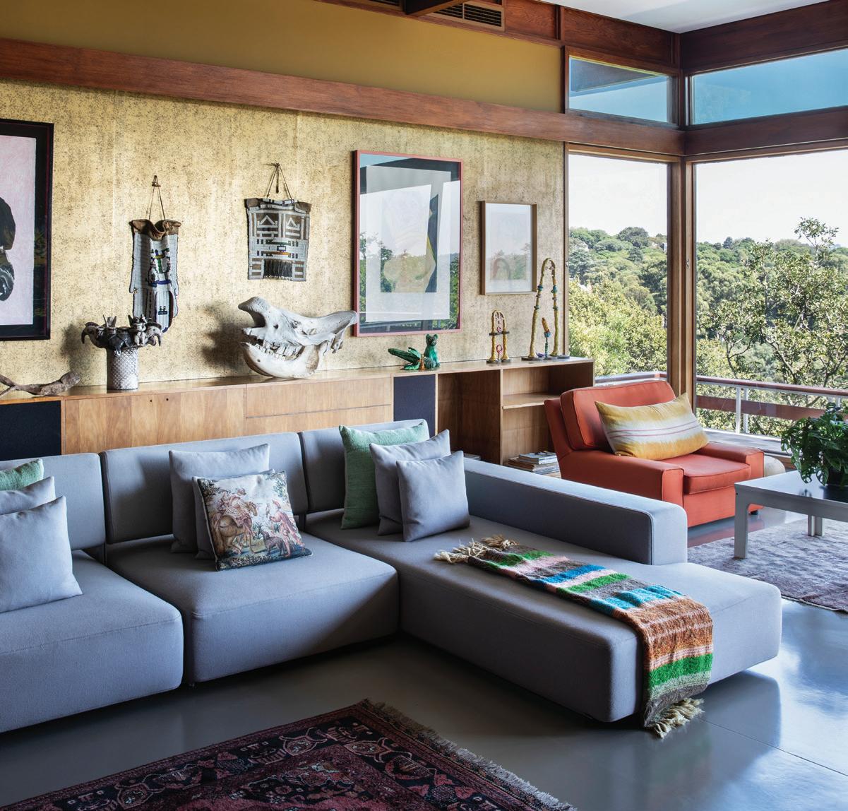 The house was originally built in 1960 over three cantilevered levels and overlooks Joburg’s unique man-made forest, with panoramic views that extend from the Melville Koppies to the Magaliesberg. “I love the open space and coming home to our sanctuary of solitude and quietness – it’s definitely where I recover and recharge,” the designer says.