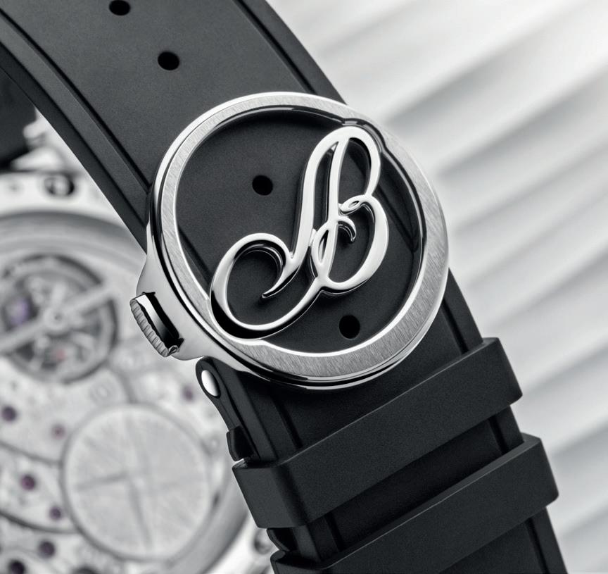 Crystal gongs and trebuchet hammers elevate the minute repeater’s acoustic performance. The gongs are attached directly to the sapphire crystal, transforming it into a resonator with exceptional sound quality. Trebuchet hammers recover most of the energy lost in traditional designs, producing a chime of unparalleled strength. A further enhancement is the silenttimelapse reduction, which eliminates the long pause between hour and minute chimes when no quarter-hour is struck, ensuring a seamless auditory experience.
