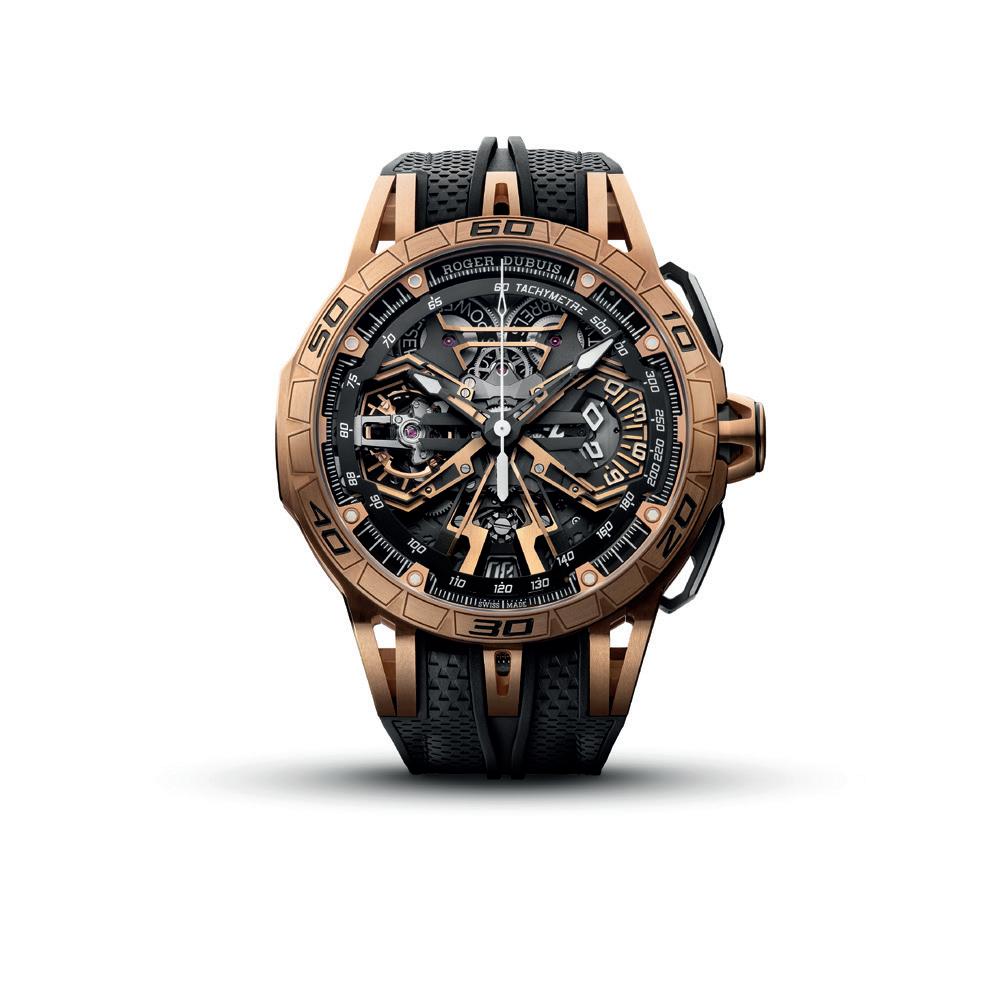 Roger Dubuis dares to take the complication elsewhere. With the Excalibur Spider Flyback Chronograph, the Maison reframes the chronograph as an object of haute horlogerie, transforming function into sculpture, precision into performance art.