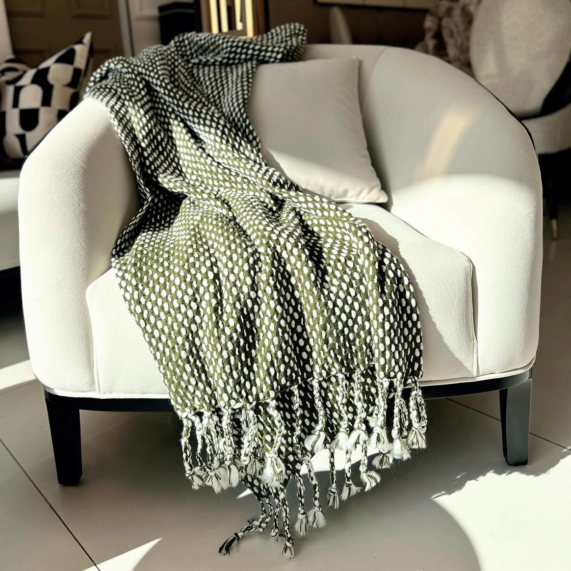 Olive Green Throw With Tassels £105.00